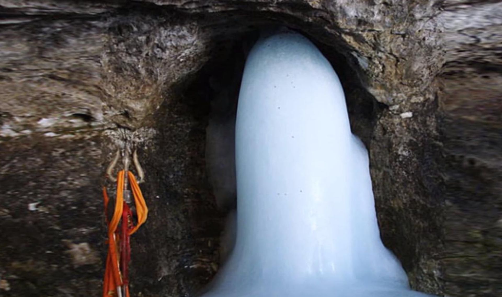 Inside the mountain cave, water droplets drip down from the top and freeze into ice, forming an ice stalagmite known as Shiv Linga, which Hindus believe is a phallic emblem of Hindu God Lord Shiva. Shiv Linga's natural ice formation grows from May to August and then gradually wanes after that.